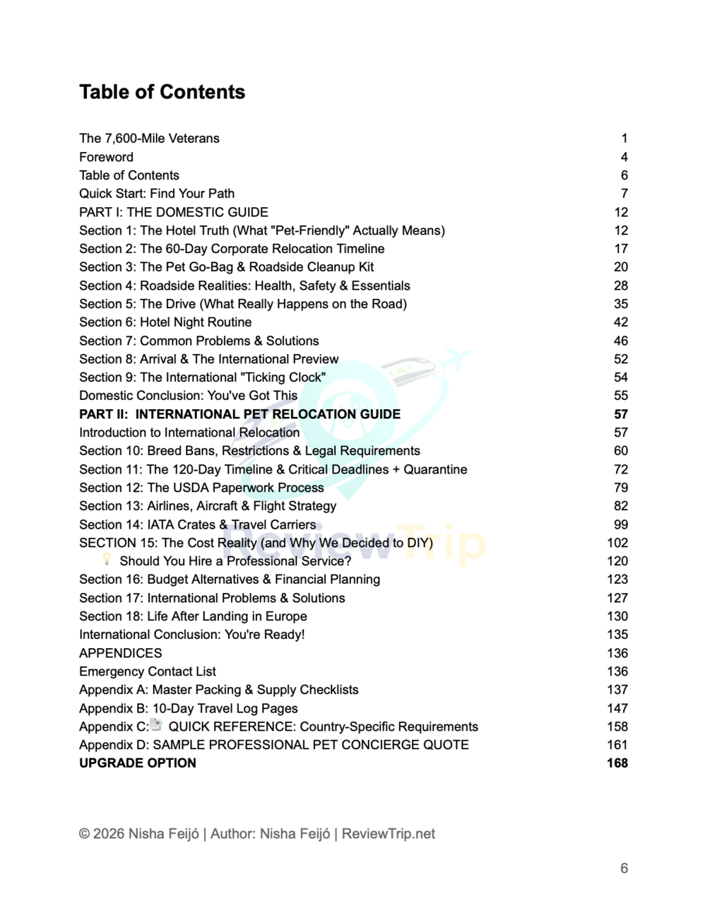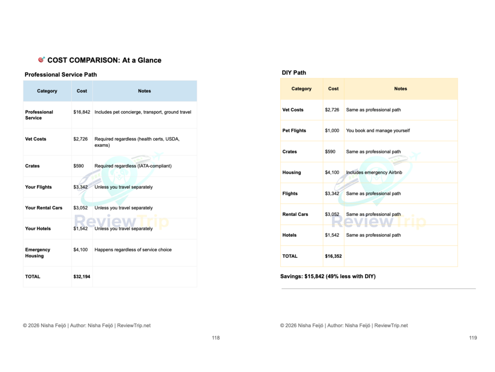 The complete DIY guide to relocating your pet โ domestic road trips and international flights. 130+ pages of timelines, checklists, airline comparisons, cost breakdowns, and lessons learned from 7,600 miles and 4 moves with 3 dogs. No fluff. No upsells to expensive pet shippers. Just the roadmap.