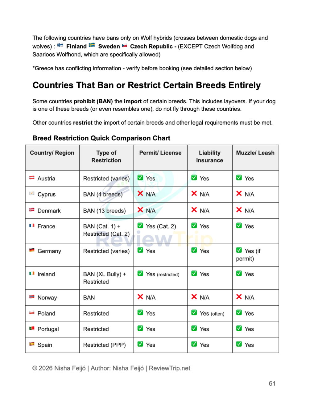 - Breed restriction guide for 30+ countries
