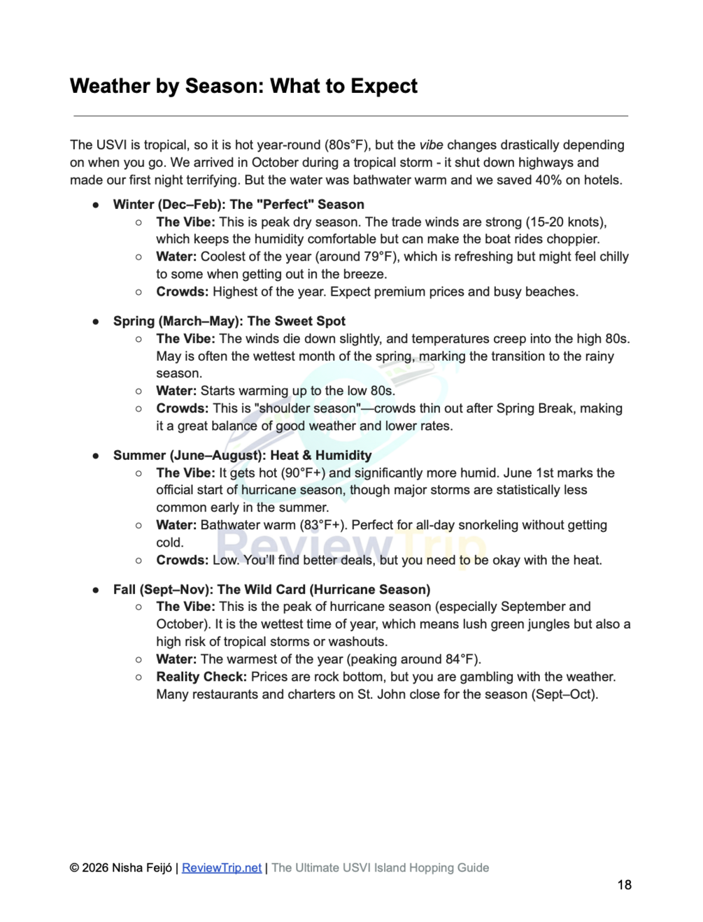 - You appreciate honest advice (like "St. Croix is wild and requires a 4x4 — this is non-negotiable")